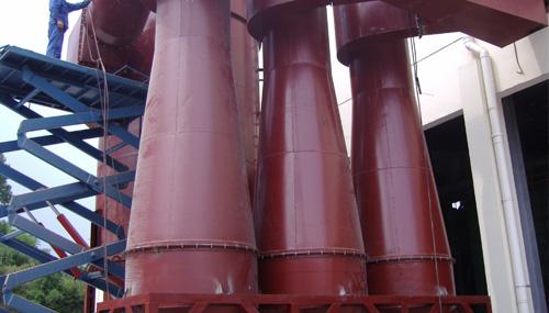 CLK擴散式旋風(fēng)除塵器,適用于捕集干燥的非纖維性的顆粒狀粉塵,主要特點是筒身呈圓錐形,因而減少了含塵氣體自筒身中心短路到出口去的可能性,并裝有圓錐形的反射屏,防止兩次氣流將已經(jīng)分離下來的粉塵重新卷起,被上升氣流帶出,因而提高了除塵效率。