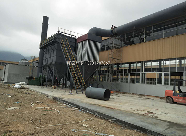 銅熔煉爐布袋式除塵器,凈化效率可達到99%,我公司電爐除塵器除塵系統由吸塵罩、風管、電動閥門、混風閥、布袋除塵器、風機、煙囪及電氣控制等組成。中頻爐產生的煙氣與粉塵被吸塵罩收集后,經調節碟閥、進風管進入旋風除塵器,收集大顆粒,并起到阻燃作用,然